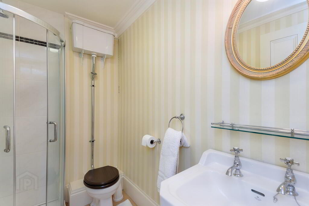 From the kitchen, the practical elements of the house are accessed; a wonderful covered porch for functional side access, guest w.c. ,utility, basement level laundry room and a boot room with access to the rear terrace.