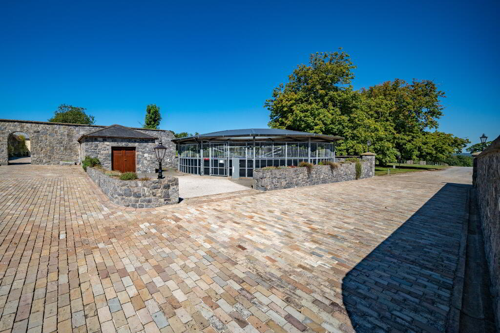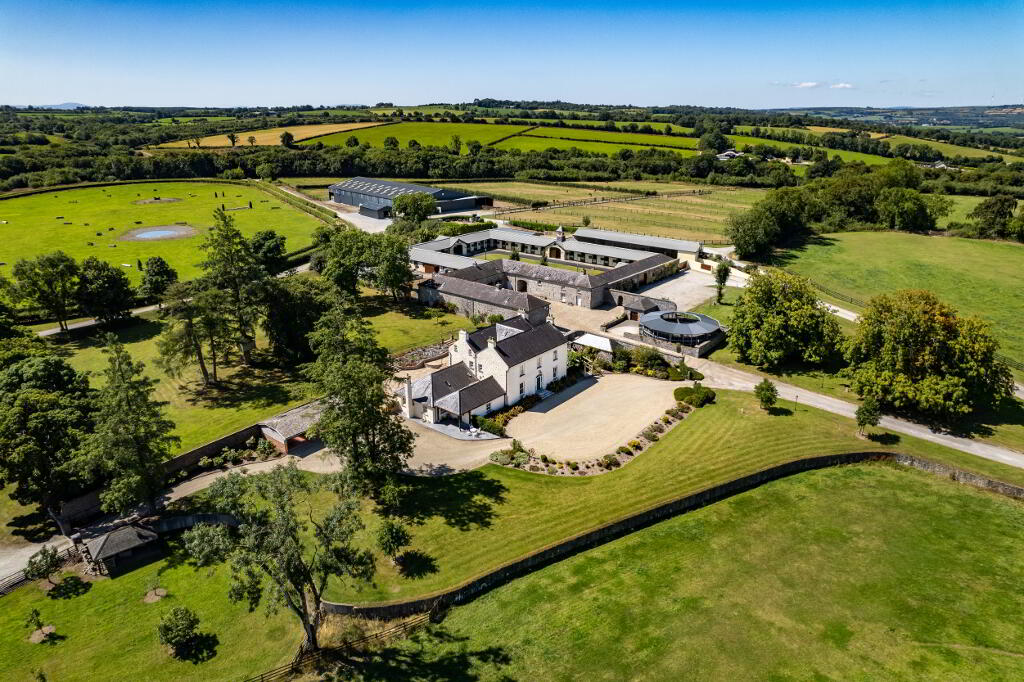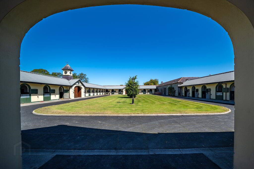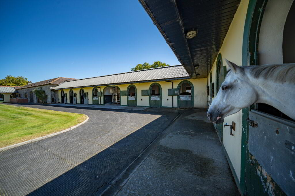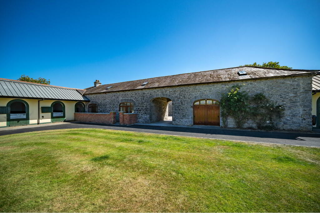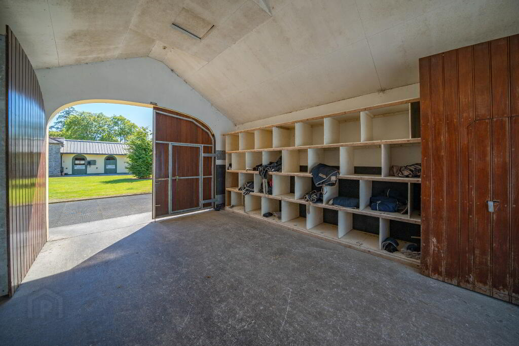 Accessed via a sweeping avenue and sheltered by mature planting, trees & hedging, the equestrian facilities are well equipped. Facilities include the following: 47 stables, 2 tack rooms, canteen, offices, ladies & gents toilet facilities, C. 0.5 acre/72m x 30m indoor school, machinery shed, quarantine area, hay barn, 4 Furlong Round Gallop, cross country course, loose school, 2 horse walkers, a loading bay and extensive parking space. The lands are enclosed by post and rail fencing and there are extensive roadways. There are a range of small paddocks immediately surrounding the yard for convenience.