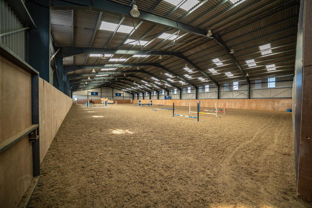A 200 Sqm covered school with lighting and additional stabling, storage and workshop.