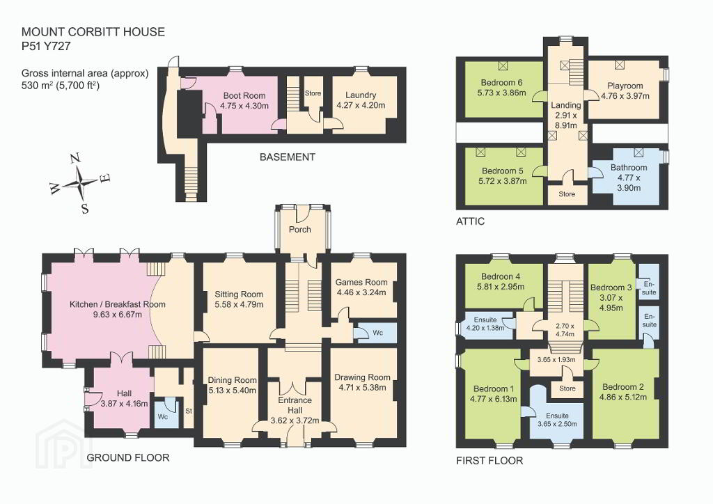 Mount Corbitt is an impressive and generously proportioned Georgian style country house with commanding views over the surrounding countryside. Perched prominently, it is believed to date back to 1780. The accommodation extends to over 5700sq. ft and is arranged over four floors. The space is well balanced between formal and informal living, the rooms are light and airy with remarkable ceiling heights throughout.