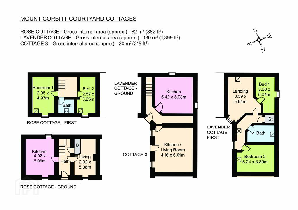 Rose Cottage comprises of an entrance hall, country style kitchen/dining area, cosy living area with exposed beams, brick surround and stove. At first floor level, there is a landing area, two bedrooms and a main bathroom.