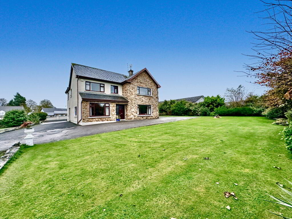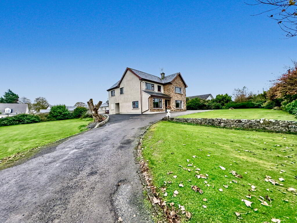 The property is approached via a stone wall entrance with a tarmacadam driveway offering ample parking and a set-down area.