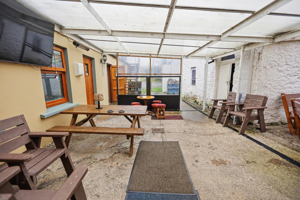 To the rear, lies a second lounge area providing additional seating around a pool table, complete with a traditioonal fireplace fitted with a solid fuel stove. This room enjoys the considerable advantage of opening onto a generous covered outdoor area, perfect for contemporary hospitality requirements. The ground floor accommodation is completed by ladies' and gentlemen's facilities, a dedicated cooler area, separate ice machine store, storage rooms, and convenient side and rear access for deliveries. A charming outbuilding presents exciting potential for conversion, subject to appropriate permissions.