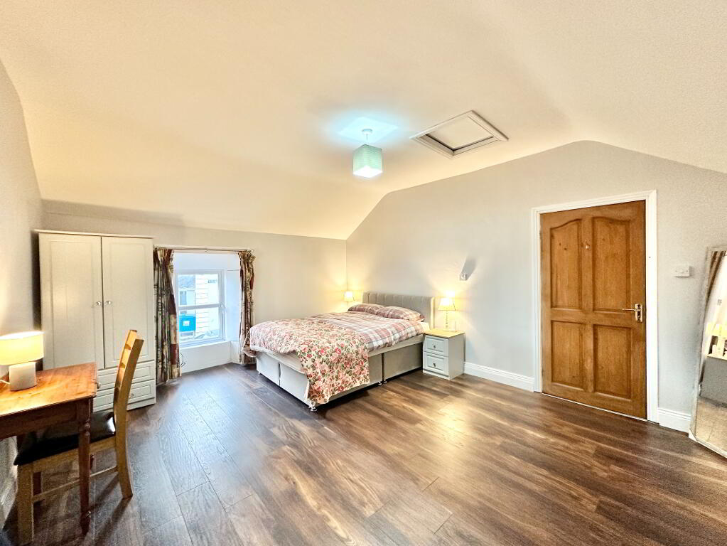 Also located at the rear of the ground floor is a versatile room which may serve as a bedroom or alternatively as a separate dining room, depending on the needs of the purchaser. This level is further complemented by a shower room and a walk-in hot press providing useful storage.