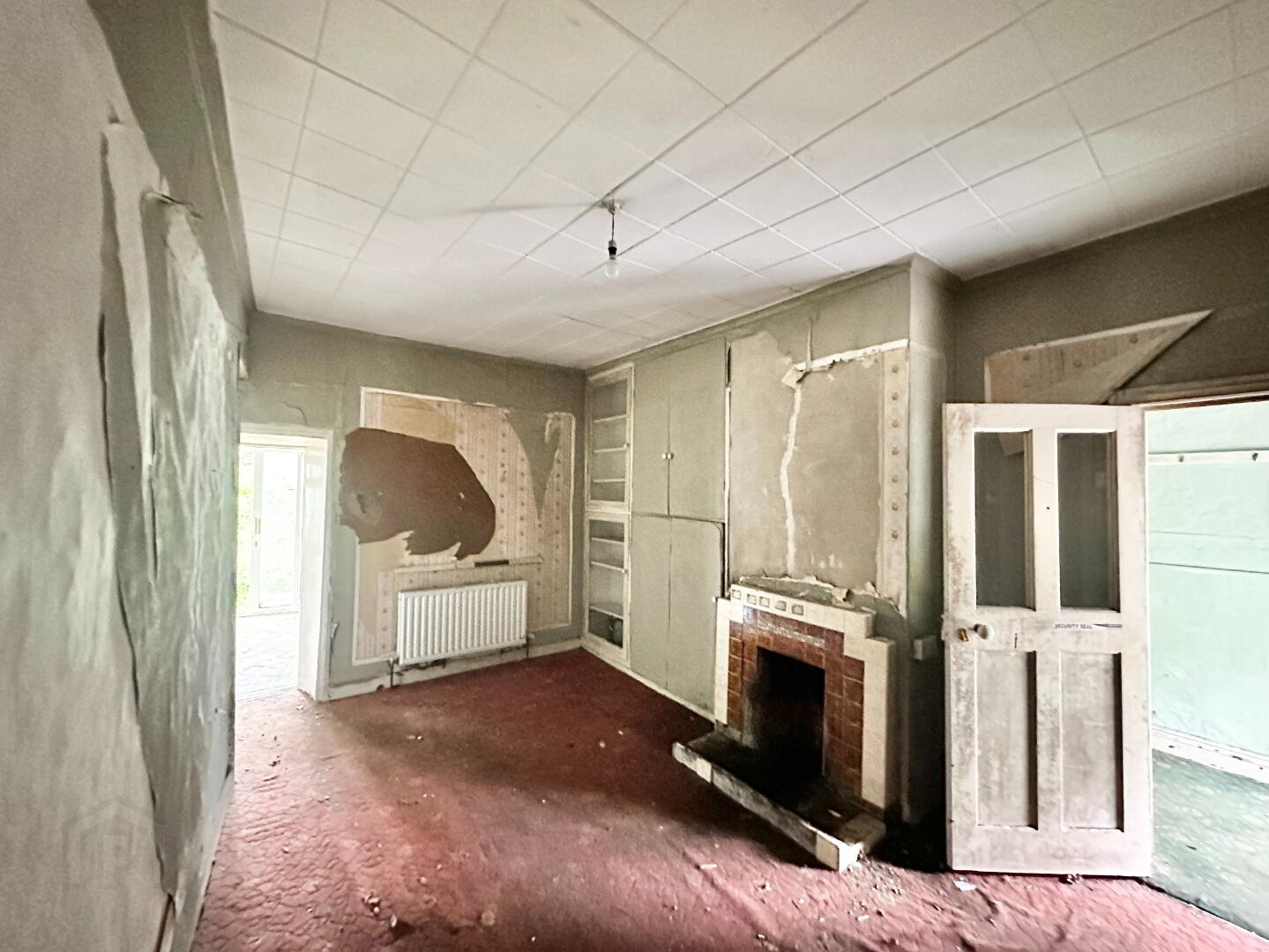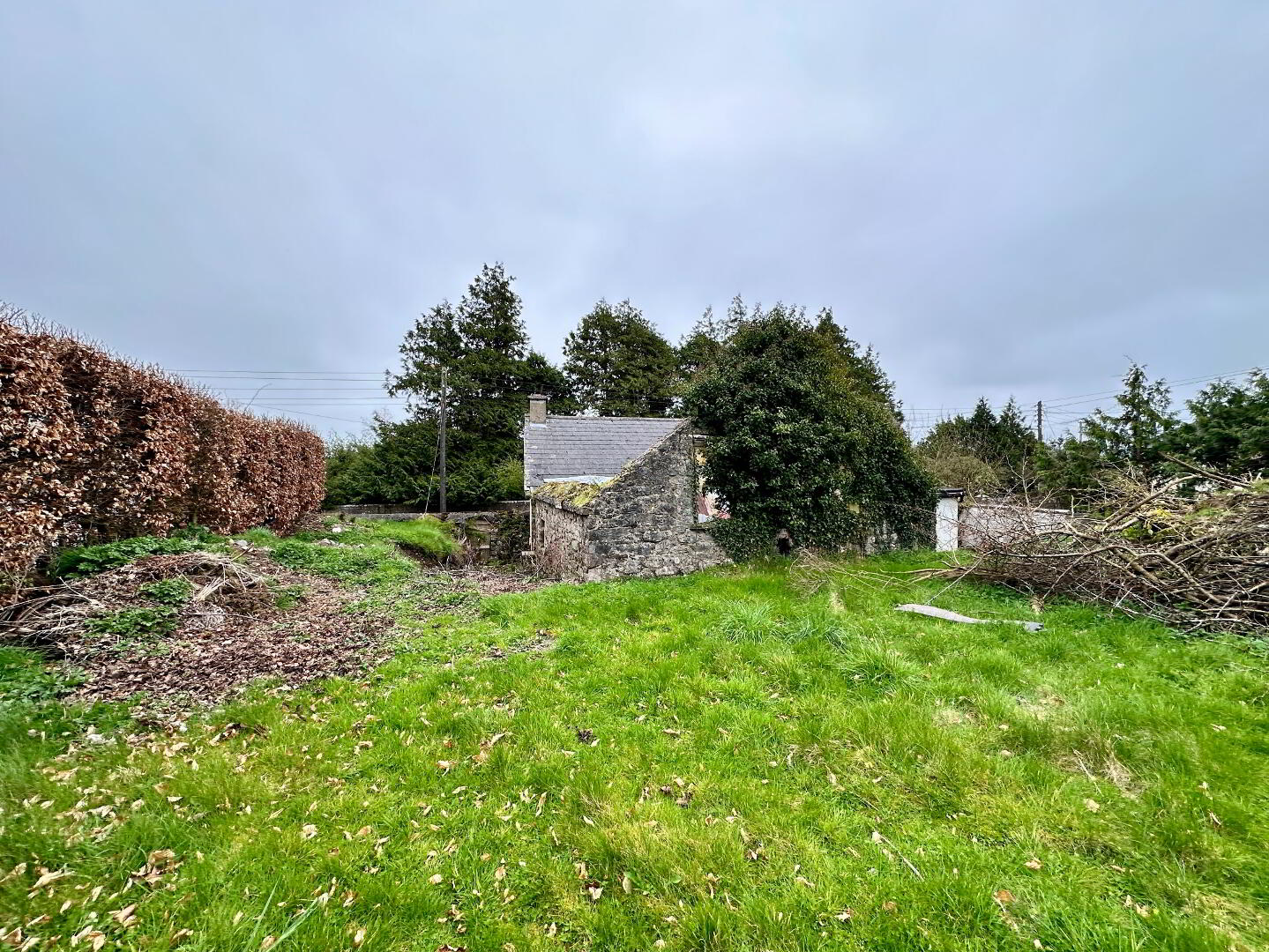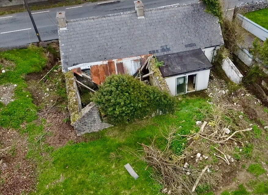 The property currently comprises a semi‑derelict residence together with an adjoining outbuilding. The main dwelling retains its original layout and footprint, while the adjoining structure has suffered a roof collapse and requires full reconstruction.