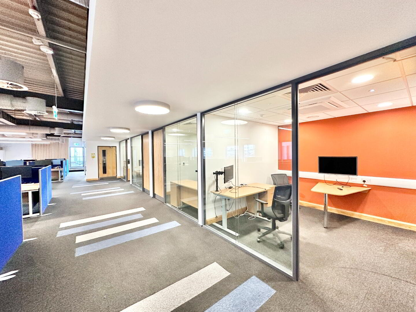 The unit extends to approximately 279 sq. m. (3,003 sq. ft.) and is currently configured as bright, open-plan office accommodation with four private offices and a boardroom, ideal for a range of business uses.
