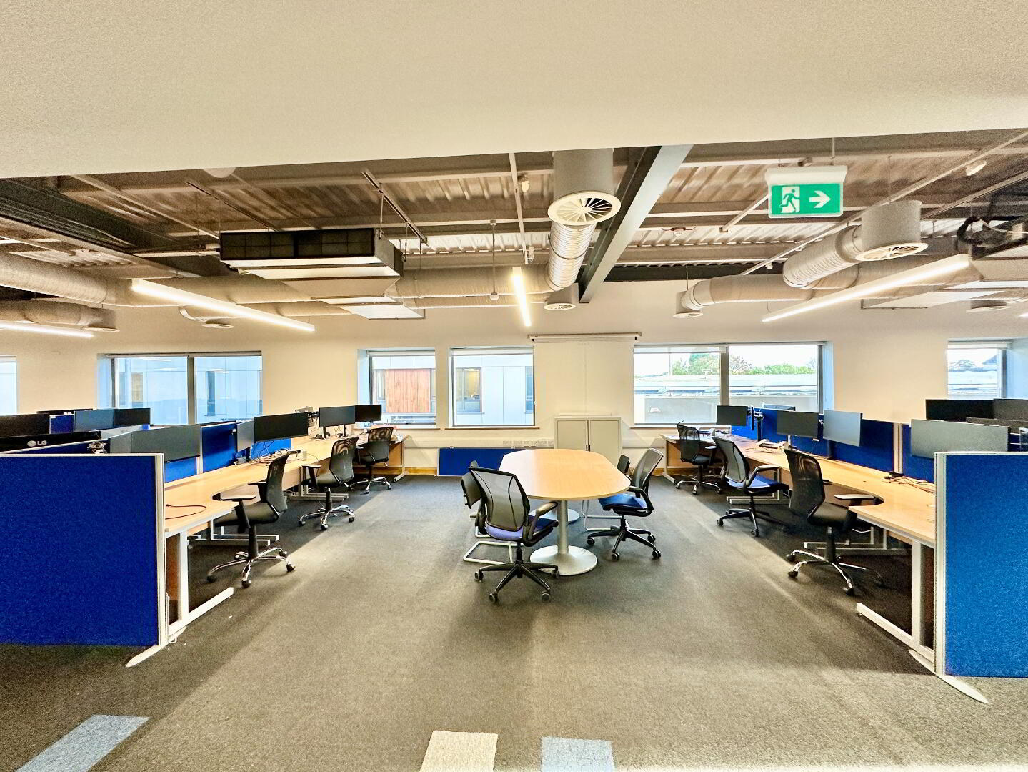 Staff and clients alike will appreciate the generous natural light, extensive glazing, and anti-glare blinds, which combine to create an inviting, professional workspace. Facilities include ladies, gents and disabled WCs, a canteen area, and access to a substantial private outdoor terrace extending to circa 187 sq. m., perfect for breakout space.
